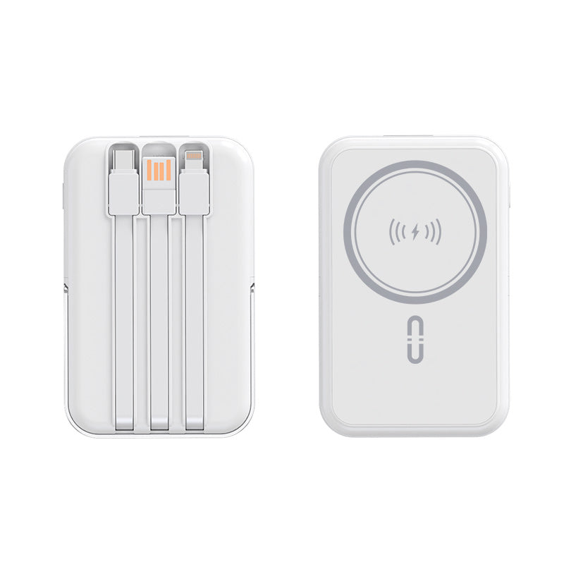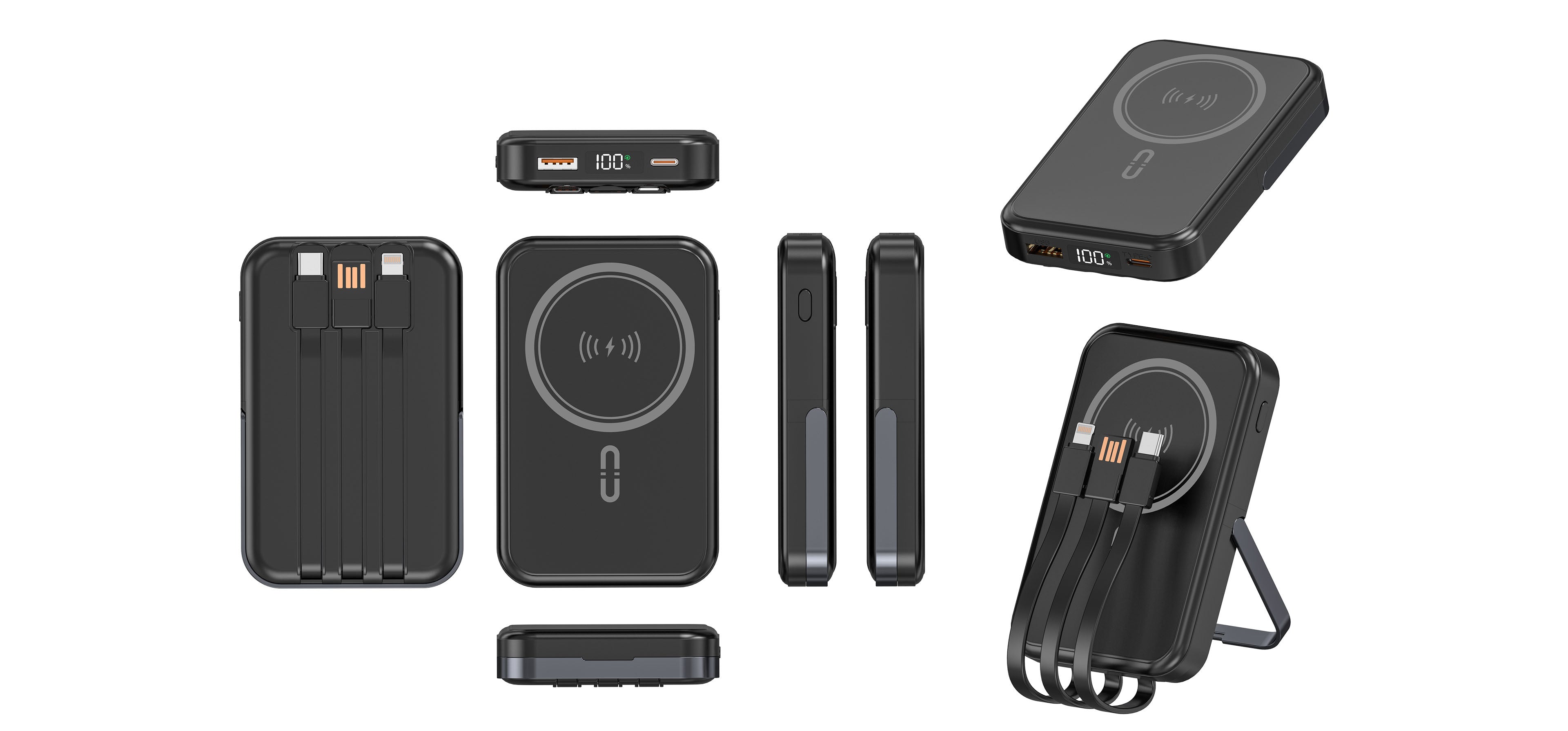 Compact yet versatile, this power bank combines MagSafe convenience, wired and wireless charging, built-in cables, and a handy phone stand.
