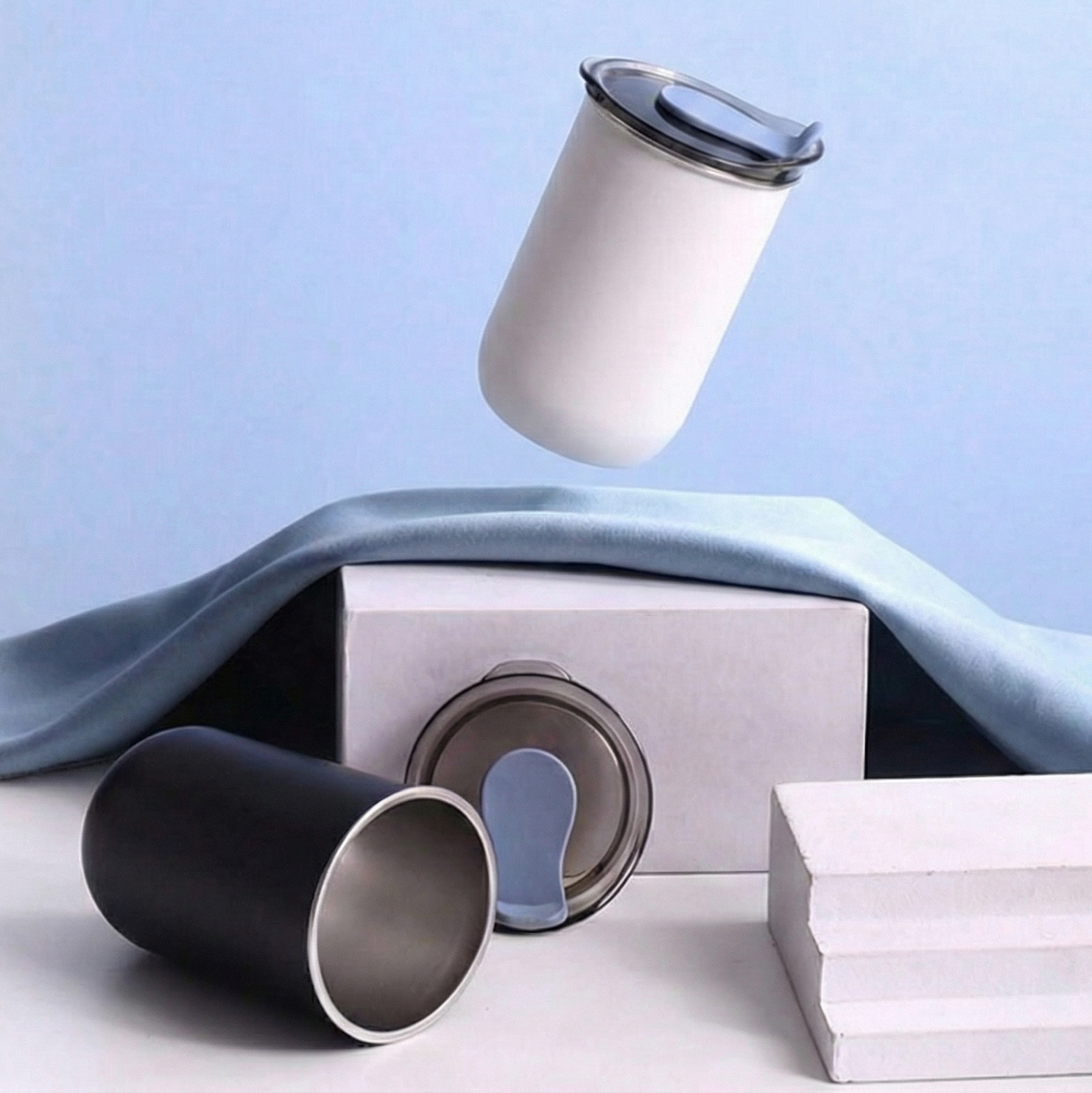 Eco-friendly 300ml stainless steel cup with vacuum sealed lid and sipper slot. Durable, leak resistant, and perfect for iced beverages on the go.