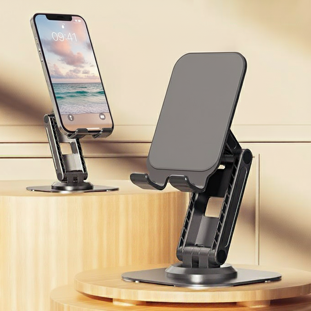 360° rotating phone and tablet stand with foldable, non-slip design for hands free viewing.