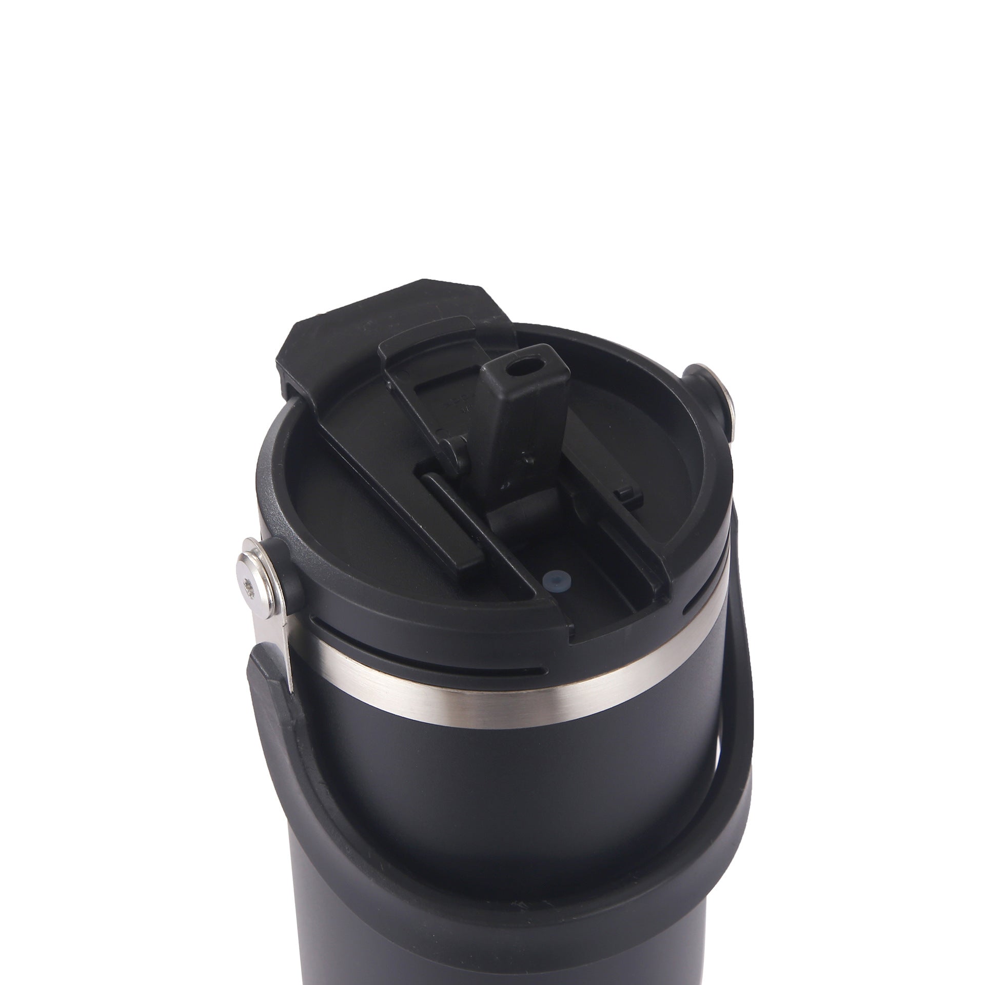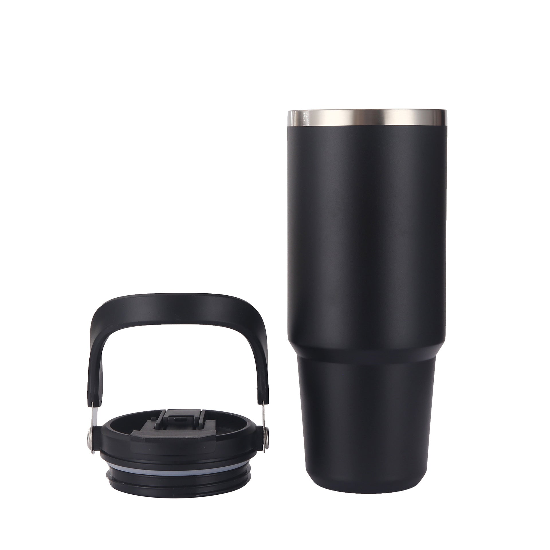 900ml stainless steel insulated tumbler with double wall vacuum insulation, splash resistant lid, and ergonomic handle keeps drinks hot or cold for hours.