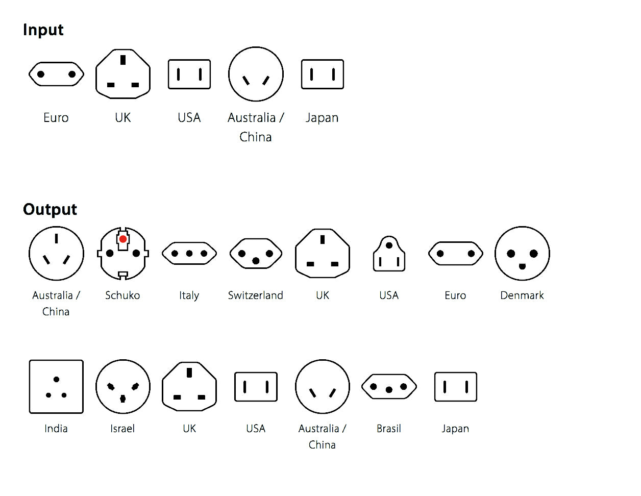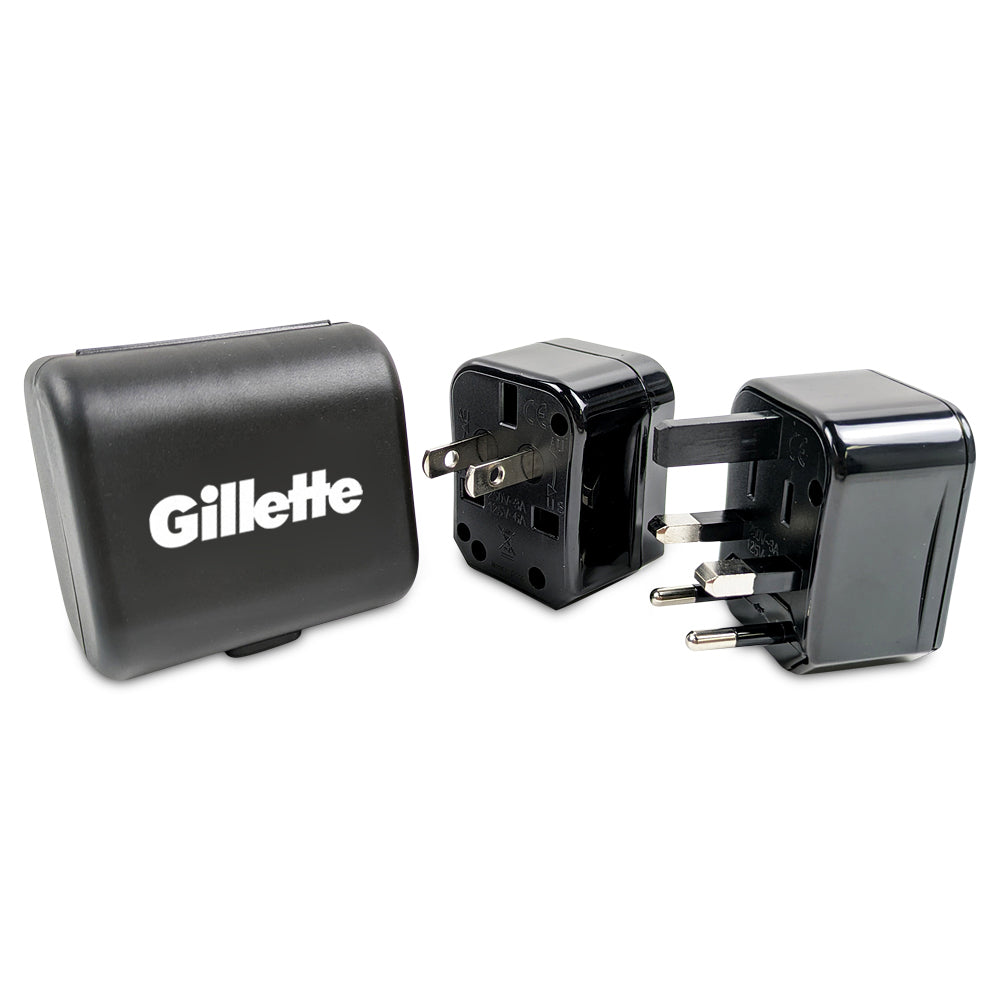 Compact universal travel adaptor with US, EU, UK, and AU plug types. Designed to cover charging needs in over 150 countries.