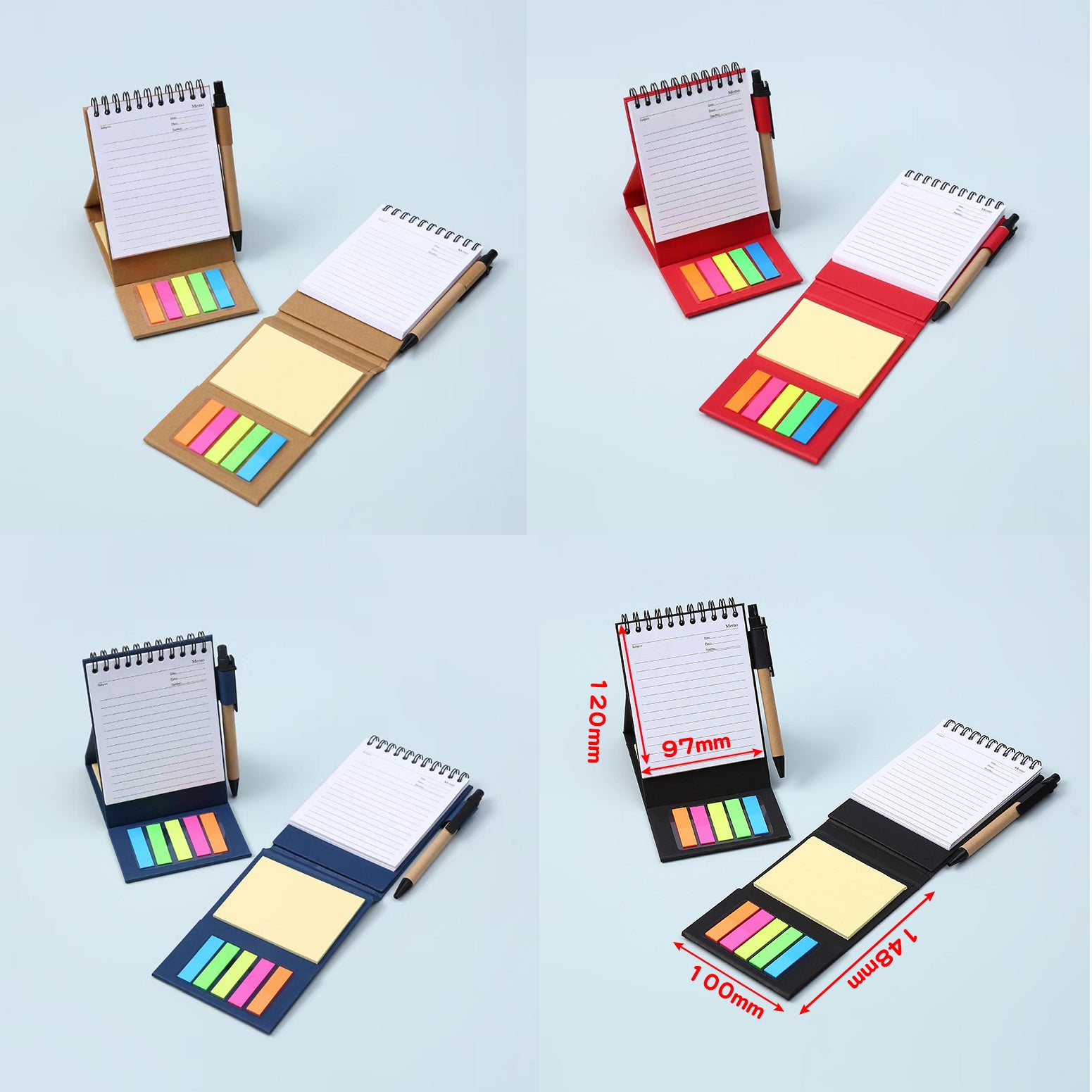 Compact and practical, this desktop notepad set includes a flip up spiral notebook, colourful sticky notes, and an eco friendly pen. Perfect for quick notes, reminders, and daily organization at home or in the office.