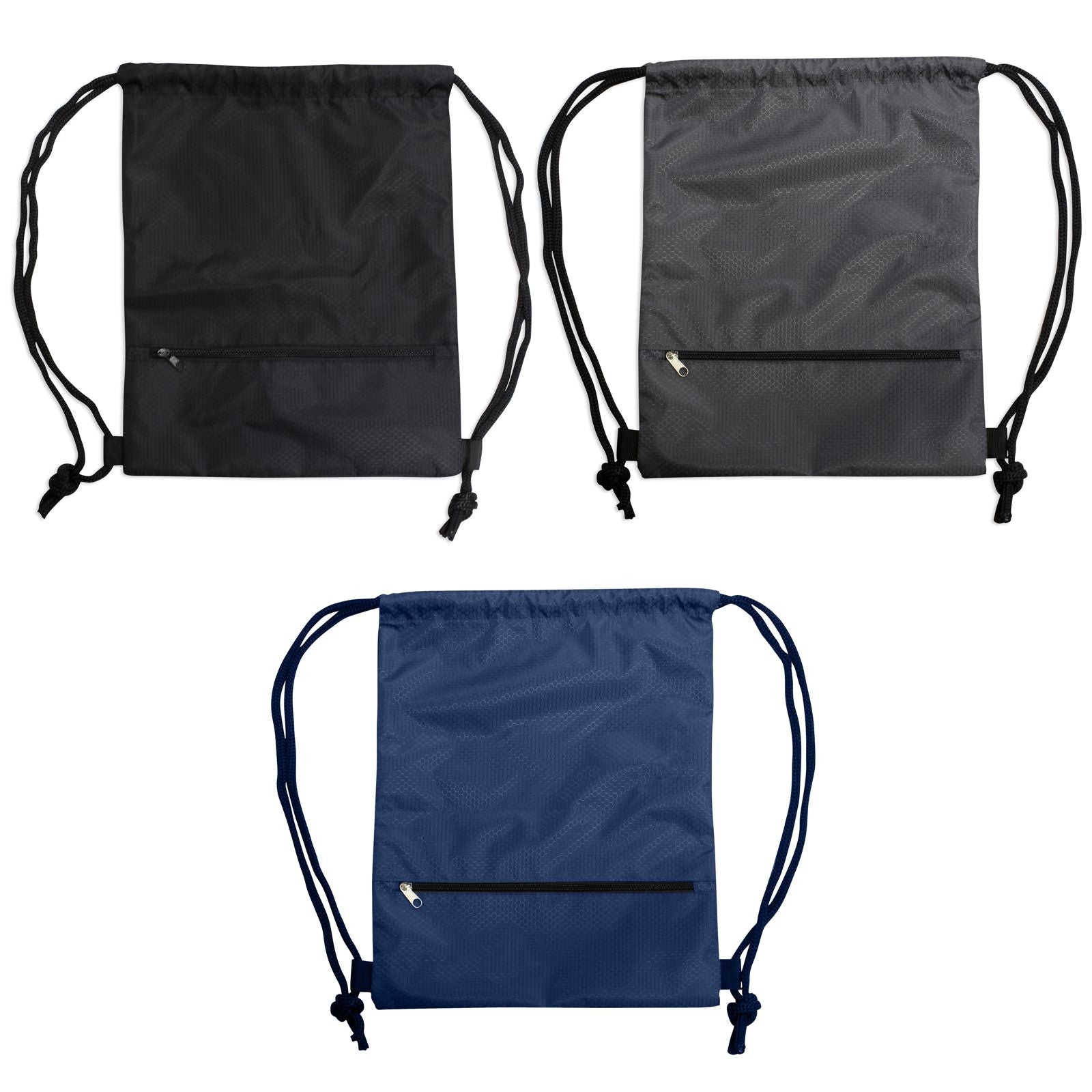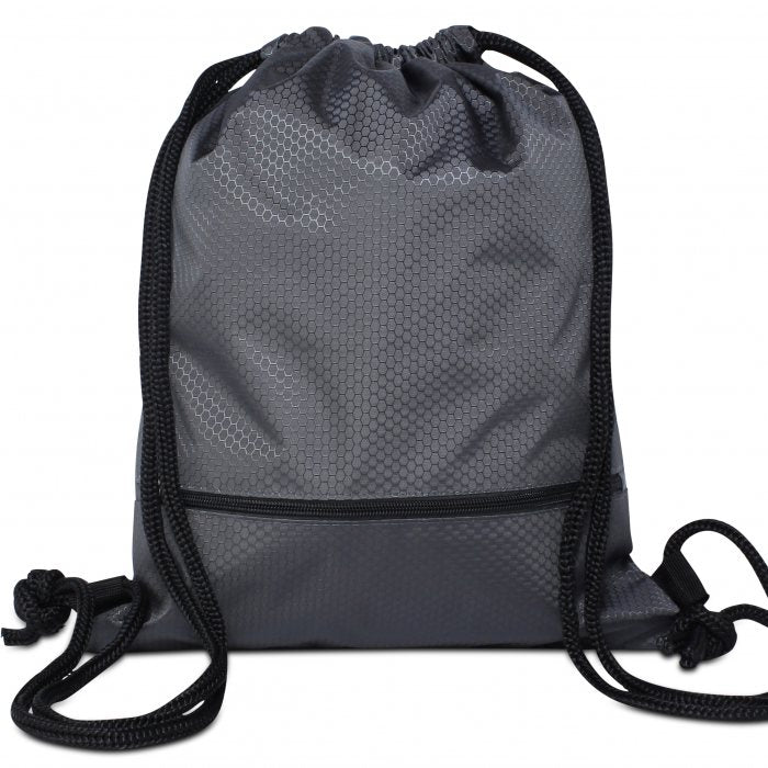A durable water resistant drawstring bag with front pocket. Perfect for gym clothes, shoes, and daily essentials while on the go.