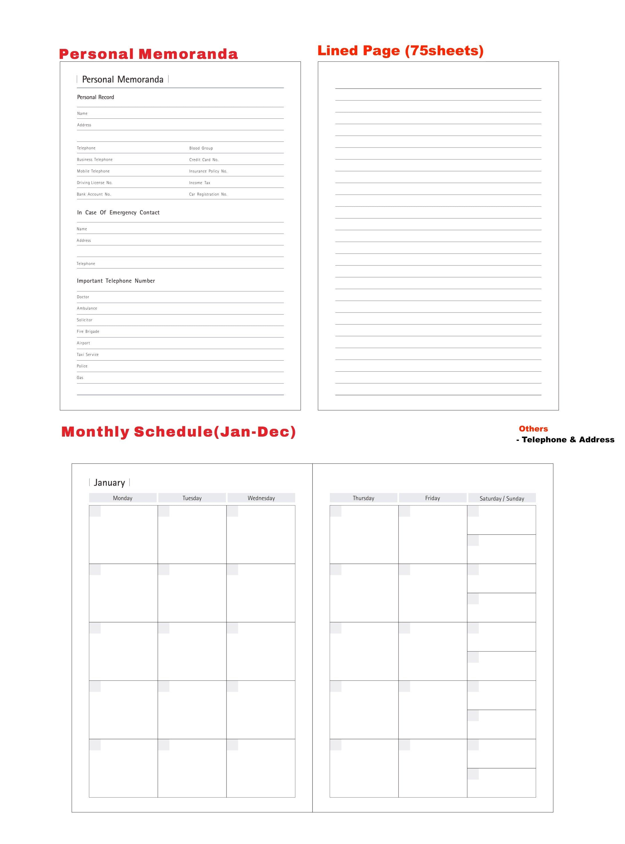 Inner Pages: 75 sheets of lined pages & year planner