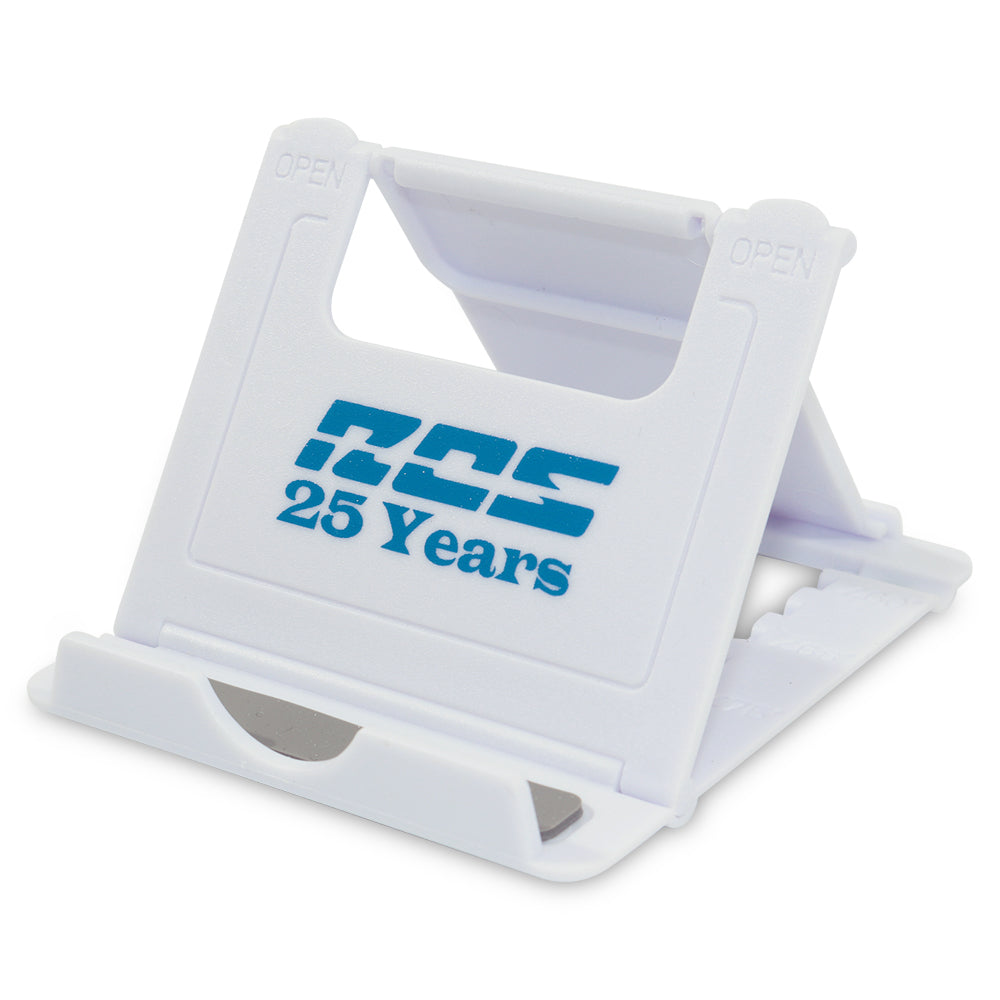 Lightweight, foldable phone and tablet holder. Portable, adjustable, and convenient for travel, desk, or on the go use.