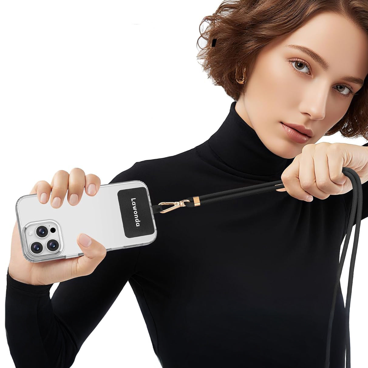 Comfortable soft-touch nylon phone lanyard with adjustable length up to 150cm, detachable buckle, and secure connector ideal for hands-free use anytime, anywhere.